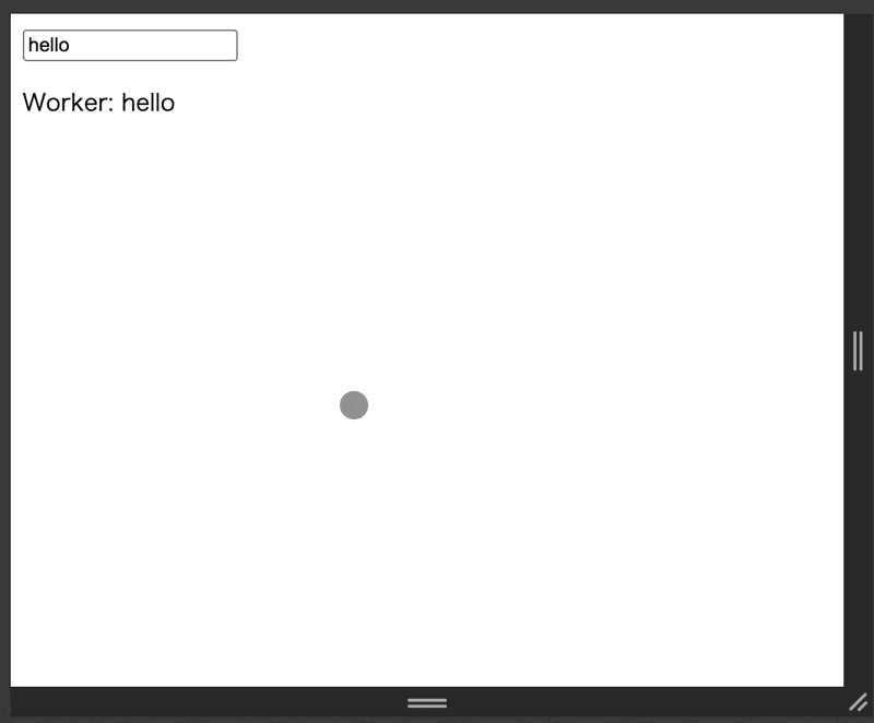 } このecho関数をAngularのresource APIと接続する。ユーザーがテキストフィールドで文字列を入力したら、それをWorkerに送ってレスポンスを表示するようにしてみよう。messageフィールドは入力されたテキストの値を保持するSignalで、workerMessageはWorkerから返されたメッセージを保持するResourceである。workerMessageはmessageの値が変わるたびにecho関数を呼び出して値を解決する。