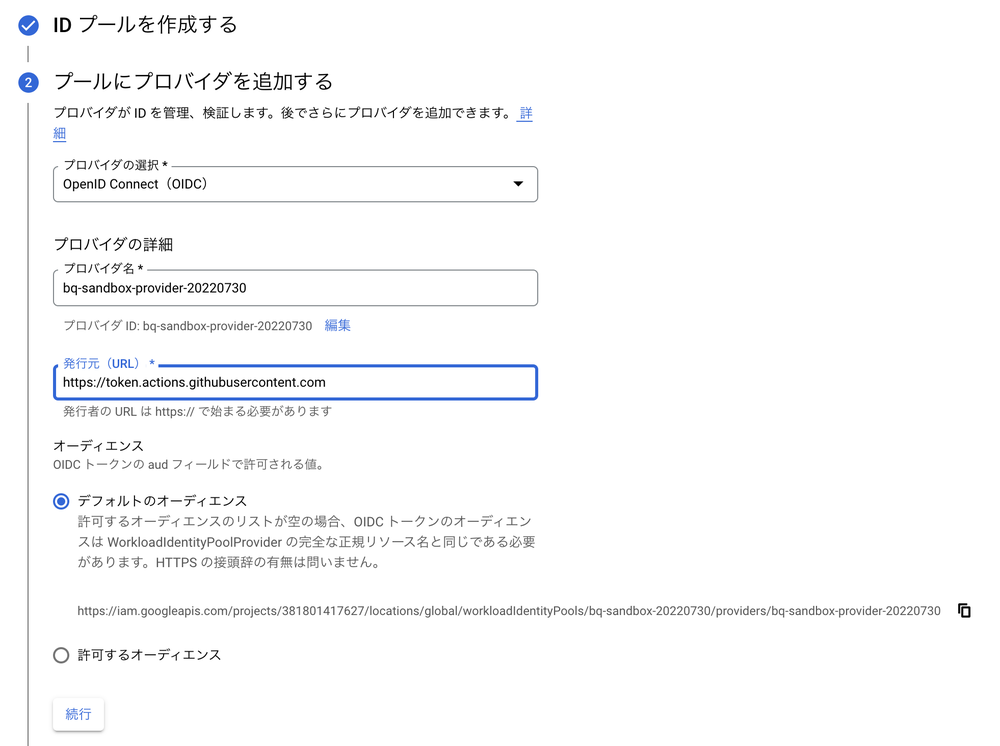 - このプロバイダに送られるJWTの発行元。GitHub Actions を示す識別子なのでプロジェクトによらず固定