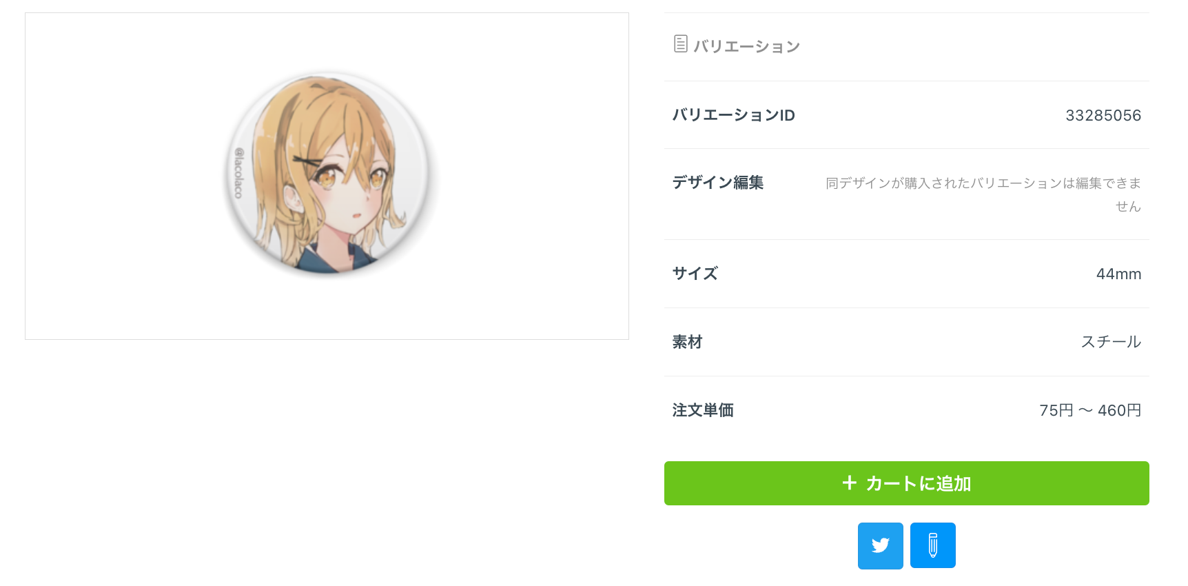 缶バッジは pixivFACTORY で制作した。一応suzuriと注文前に比較したけど、5個注文すると pixivFACTORY のほうが単価が安かった。5個くらいあると複数のバッグに常に忍ばせておけるし、失くしたときにも便利(さっそくひとつ失くしている)。