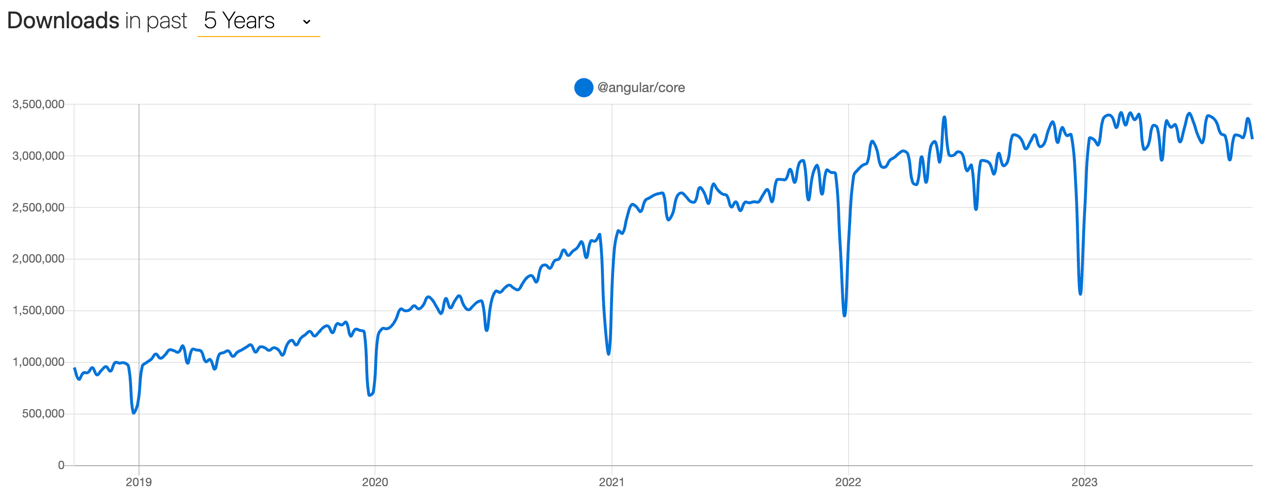 Angularのnpmパッケージは週に300万回以上ダウンロードされており、