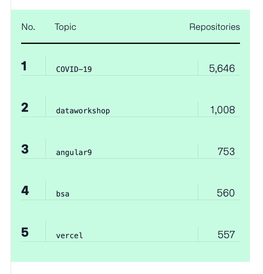 2020年にはレポジトリにつけられたトピックの3位にangular9がランクインしており、